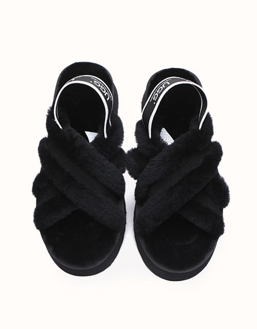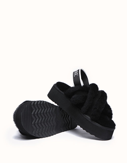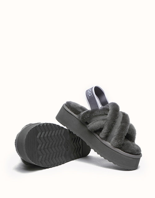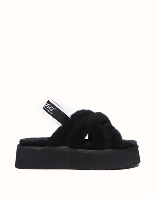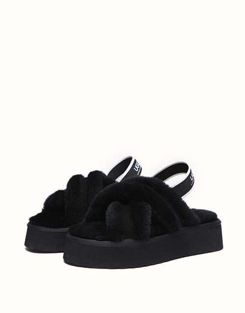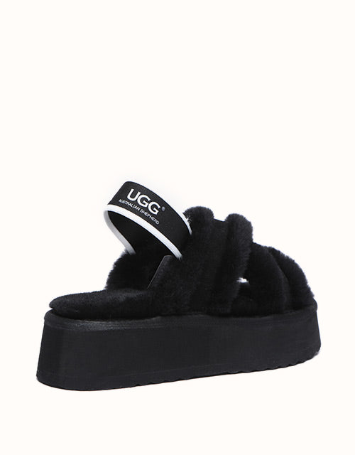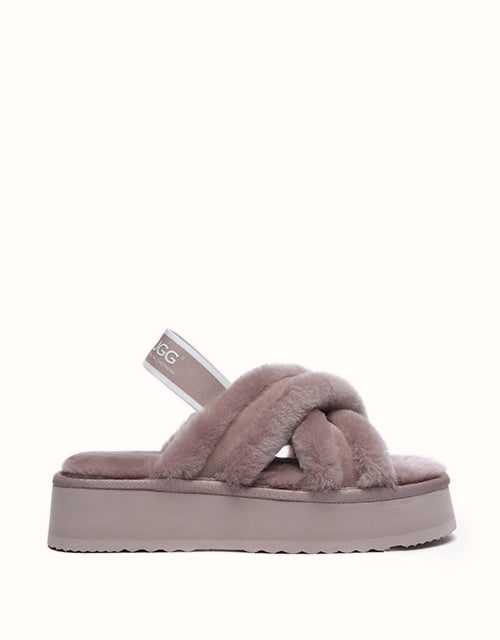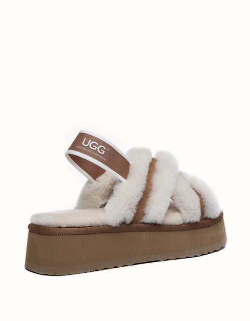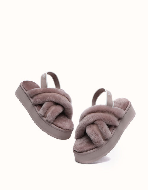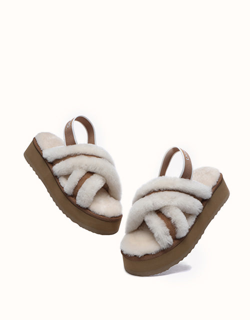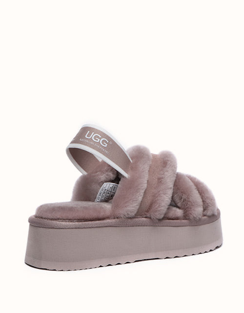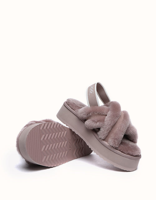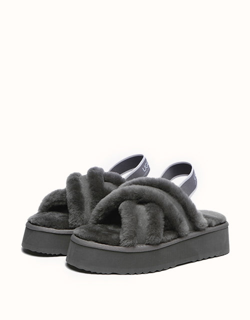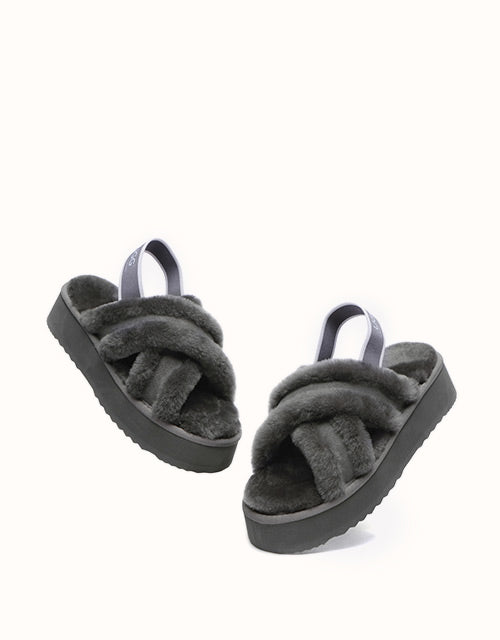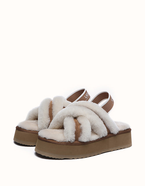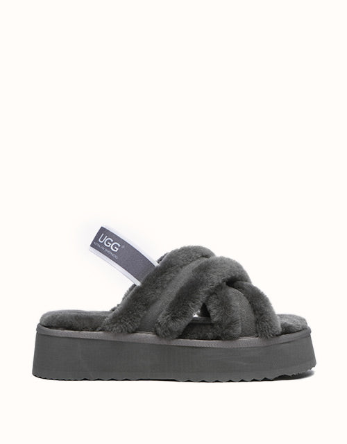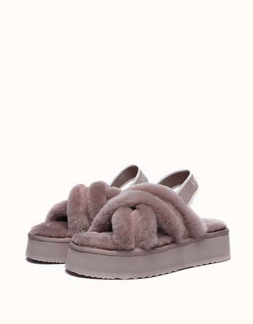 Experience the unique twist on the on-trend platform slides with AUSTRALIAN SHEPHERD® Aditi. These must-have slides feature a plush crossover strap and a luxe branded back strap. Choose from four captivating colors: Dawn Pink, Chestnut, Grey, and Black. Premium sheepskin wool lining and insole take the fashion and comfort of these shoes to the next level - keep your feet warm, cozy, and comfortable while exuding style!