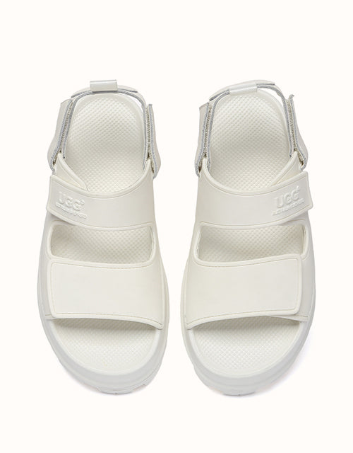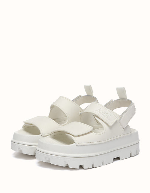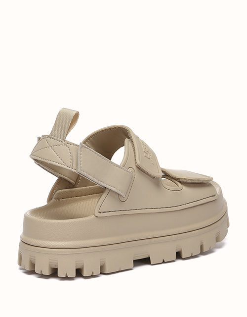Australian Shepherd Beatia Chunky Platform Sandals combine effortless style and comfort. With double velcro straps and smooth PVC uppers, they’re easy to adjust and wear all day. Available in black, ivory, and beige.