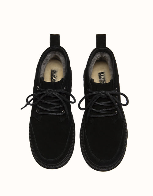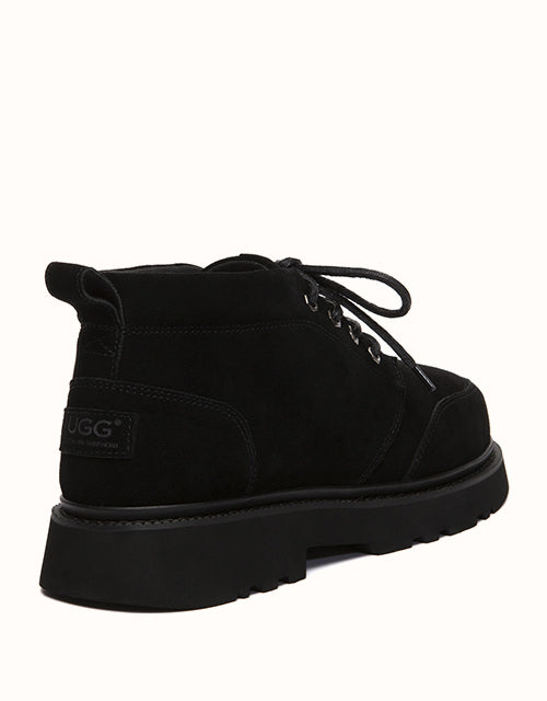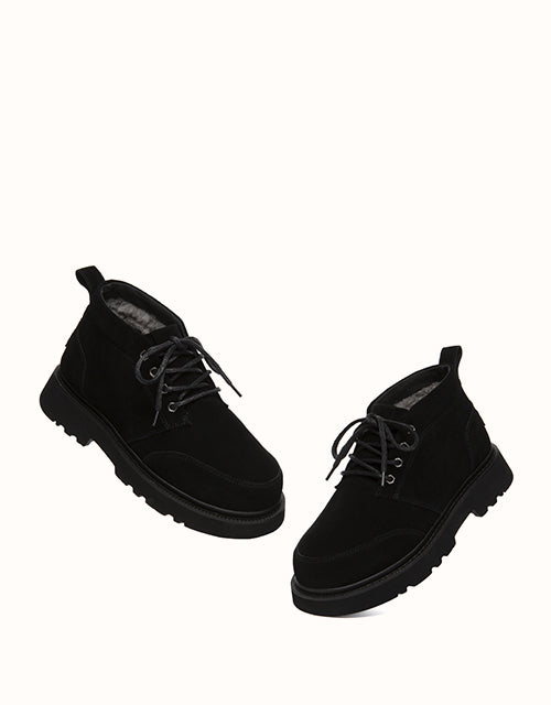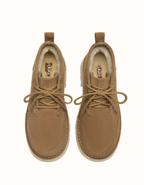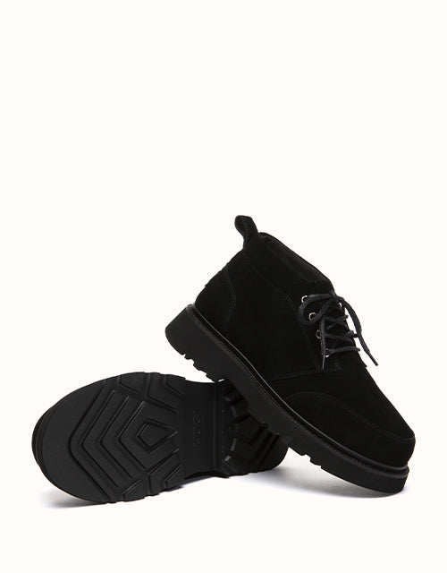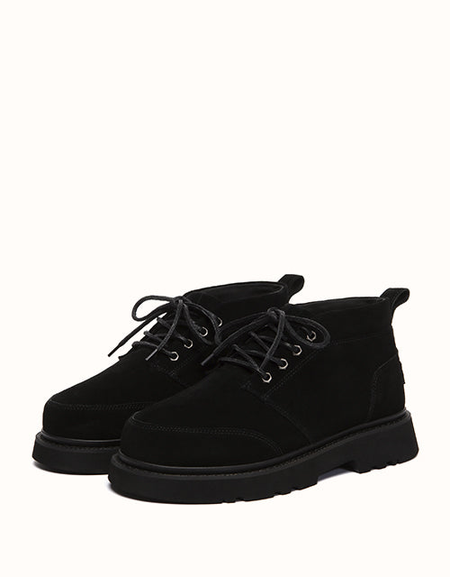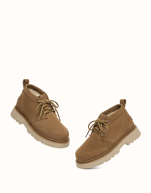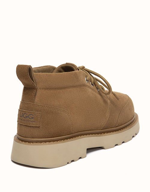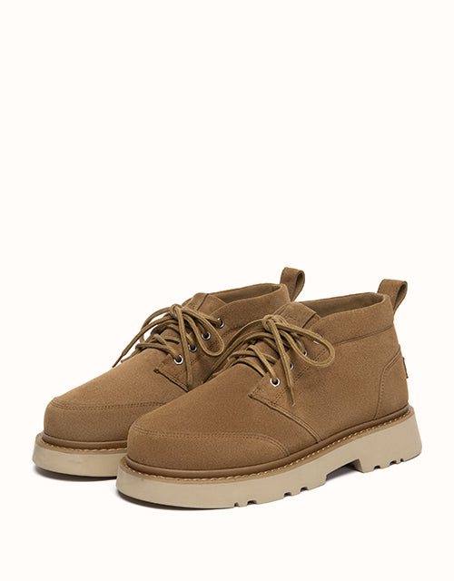 The AUSTRALIAN SHEPHERD® Caelen Chukka Boots deliver warm, everyday comfort with a classic lace-up silhouette. Made from breathable cow suede with plush sheepskin wool lining, they offer soft cushioning and natural warmth for cooler days. Finished with a lightweight EVA sole, this casual ankle design pairs easily with workwear or weekend outfits.