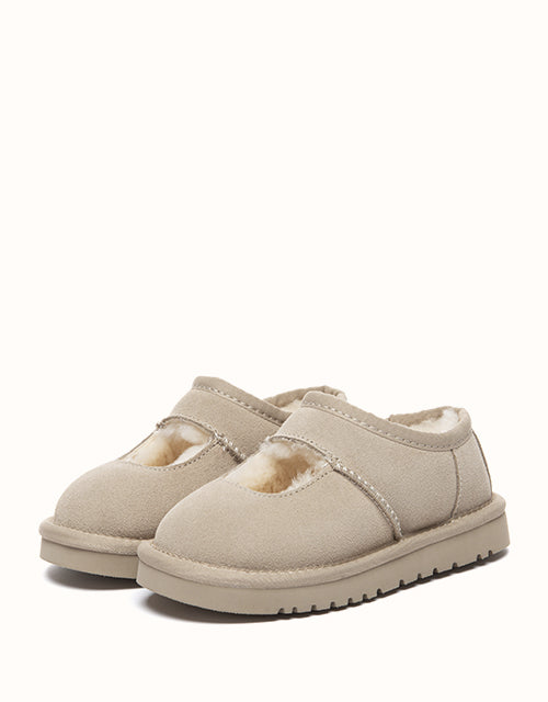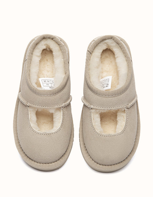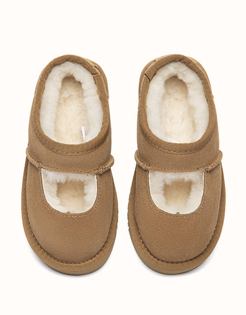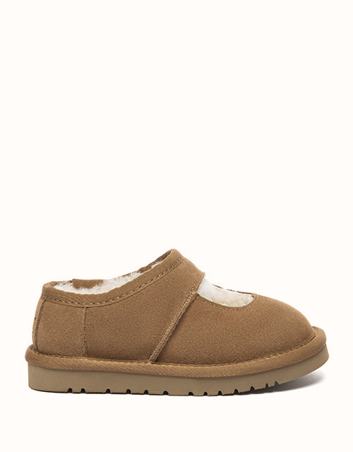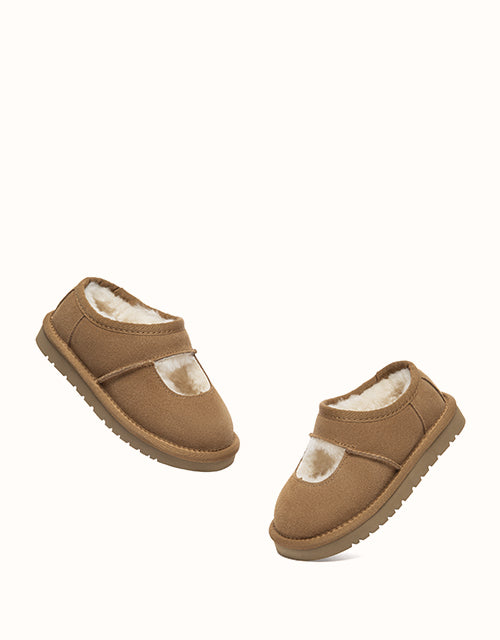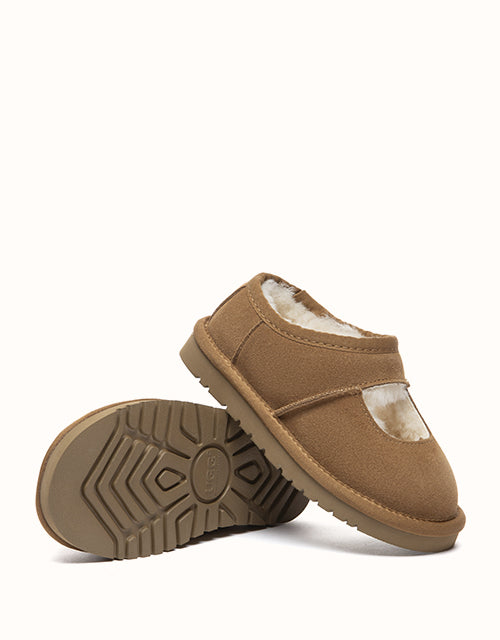 Cute and cosy, the AUSTRALIAN SHEPHERD® Carmella Ankle Kids Slippers are crafted from soft cow suede and fully lined with plush sheepskin wool for natural warmth and comfort. The easy slip-on ankle design and lightweight EVA sole make them perfect for everyday indoor wear and casual outdoor play.