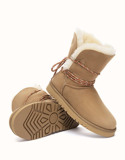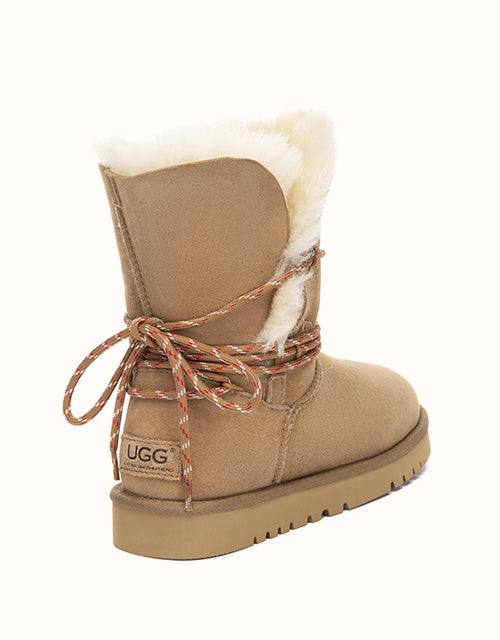 Crafted from natural double faced sheepskin, the Carmont Laced UGG Boots offer soft structure with lasting warmth. Designed with a fold-down cuff and adjustable lace detail, they move easily between a relaxed slouch look and a neatly wrapped finish for everyday winter wear.