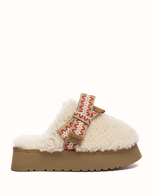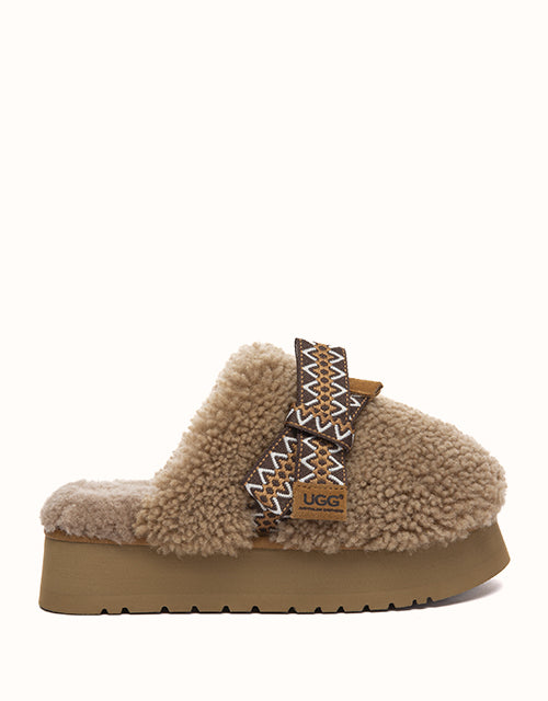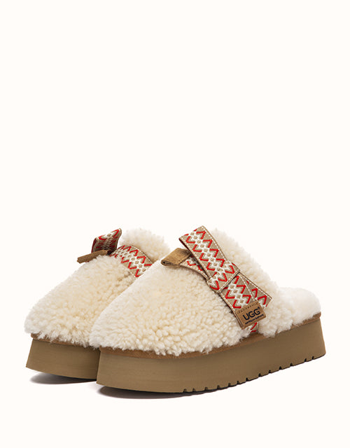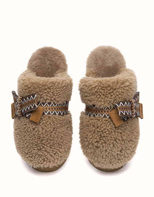 Soft sheepskin wool shapes the Cecil Platform Slippers with a plush feel and gentle warmth. Designed with an easy slip-on mule profile and a cushioned platform sole, they offer relaxed comfort for everyday indoor-to-outdoor wear, finished with a subtle bow detail for a refined touch.