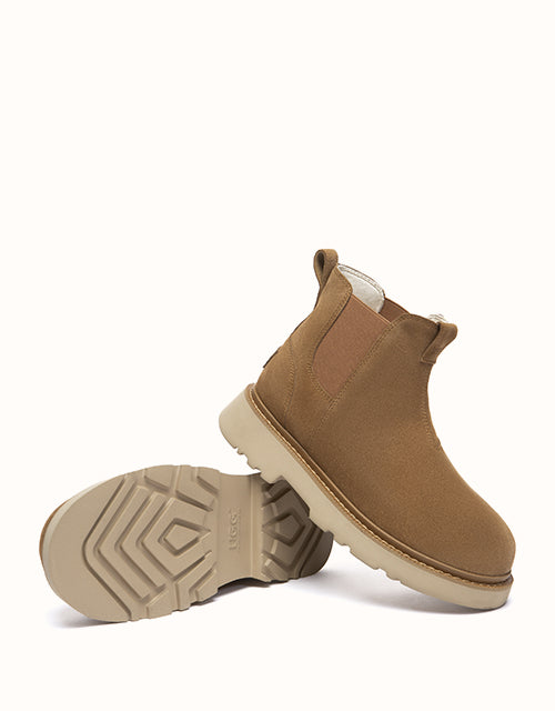 Designed for everyday ease, the Dravor Chelsea Boots feature soft cow suede with a clean, low-ankle silhouette. Finished with a lightweight EVA sole and an easy slip-on design, they offer relaxed comfort and understated style for daily wear.
