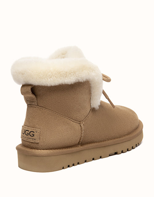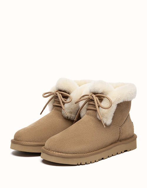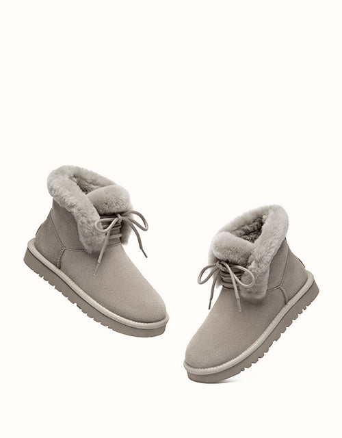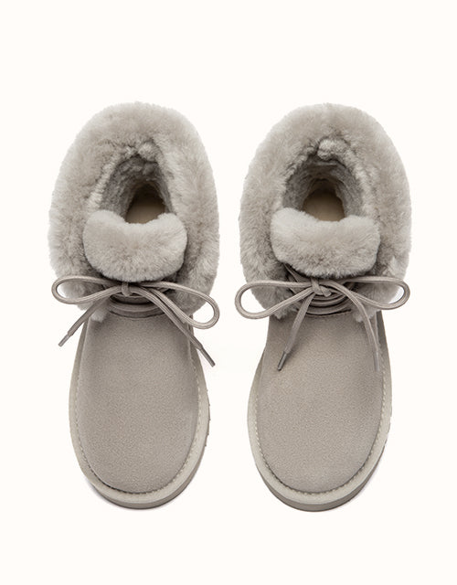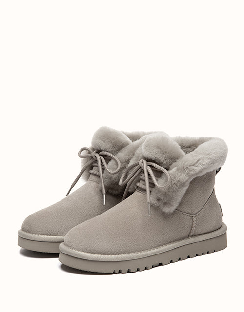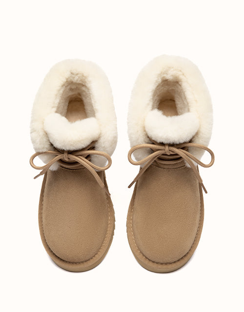 Designed with a soft wool-trimmed collar and delicate bow detail, the Dreva boot brings a cosy charm to everyday winter wear. Crafted from smooth cow suede and lined with plush sheepskin, it offers warmth, comfort and effortless style for both indoor lounging and casual outdoor outings.
