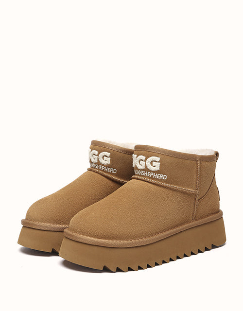 The Australian Shepherd Helia Platform Ankle Boots offer a fresh twist on the classic style. Made with soft Merino wool for lasting warmth, they feature a lightweight short silhouette with bold 3D logo stitching. The platform sole adds both comfort and style, making them easy to pair with any outfit.
