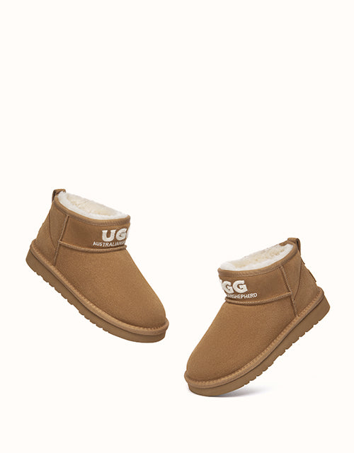 The EVERAU Helia Mini Ugg Boots keep feet warm and comfortable all day. Made from Australian sheepskin with breathable plush lining, they feature an ankle-height design and lightweight EVA sole for everyday wear.