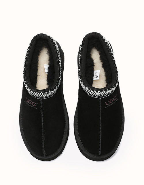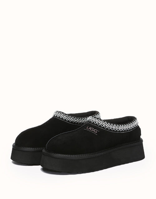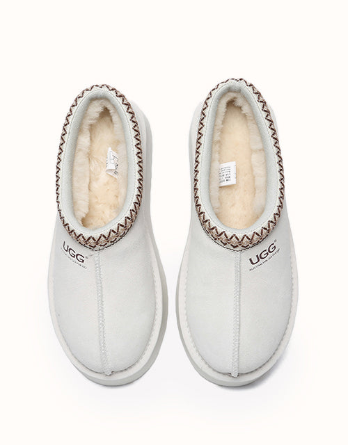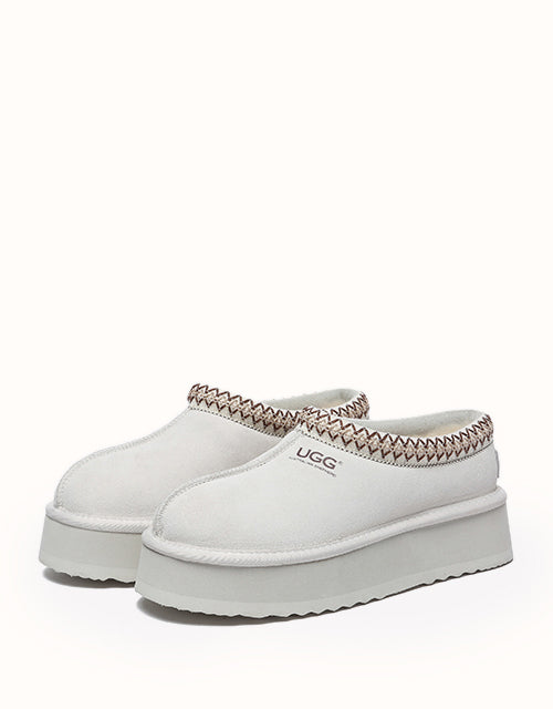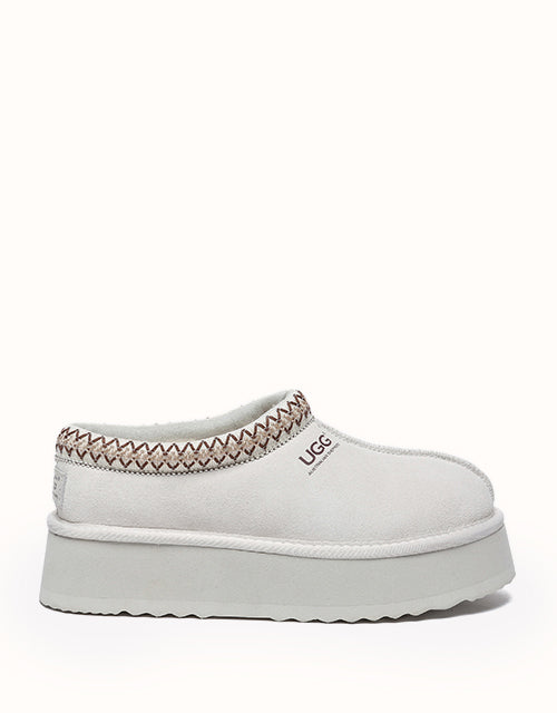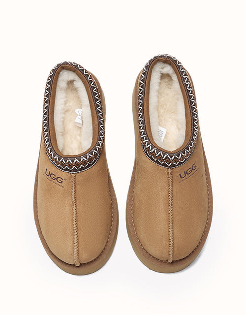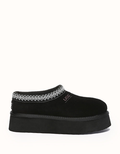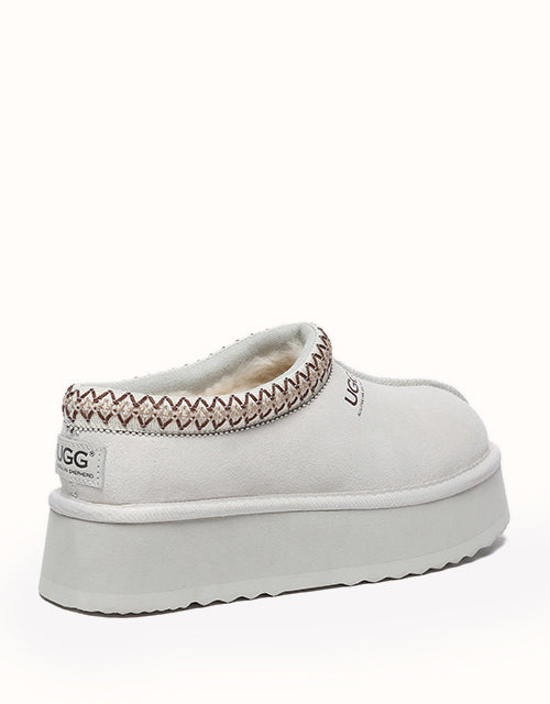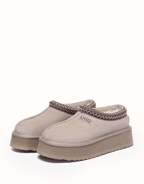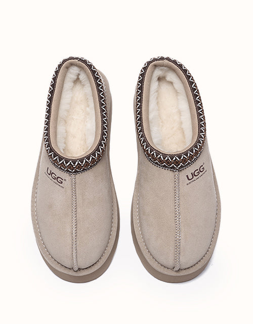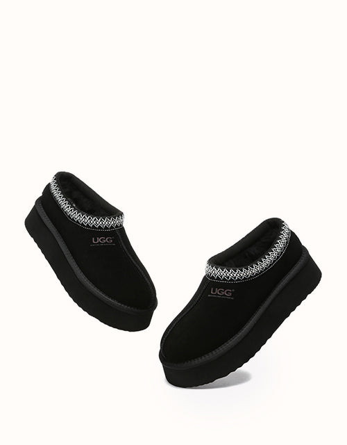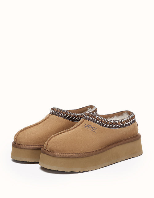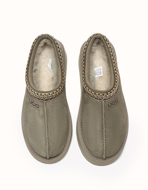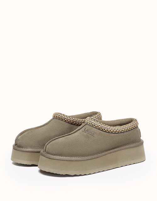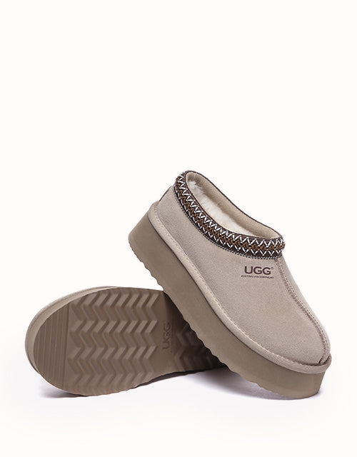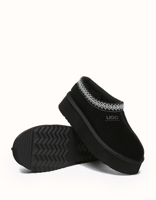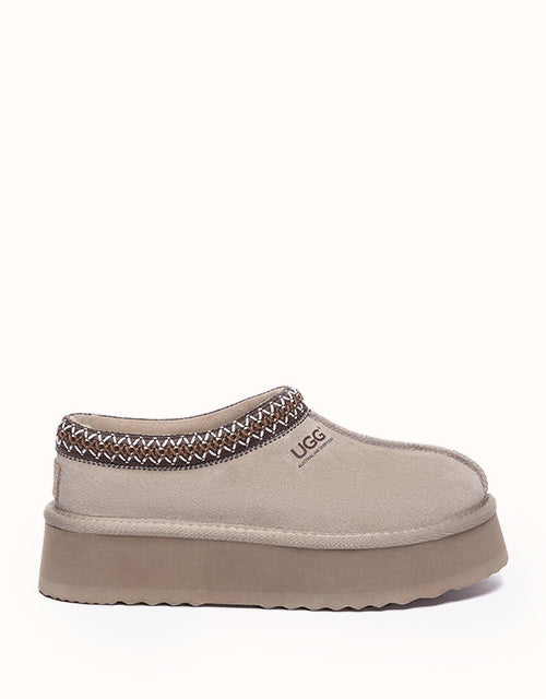 Channel your most stylish self with the Australian Shepherd Tazzy Hippie Platform Ugg Slippers. Designed with a tassy platformed sole, the trendy style offers sophistication and comfort all in one slipper! Featuring five neutral colorways, including chestnut and olive, these slippers can be styled with any ensemble while embodying undean rstated elegance.