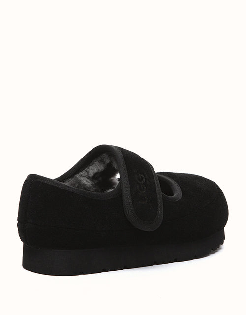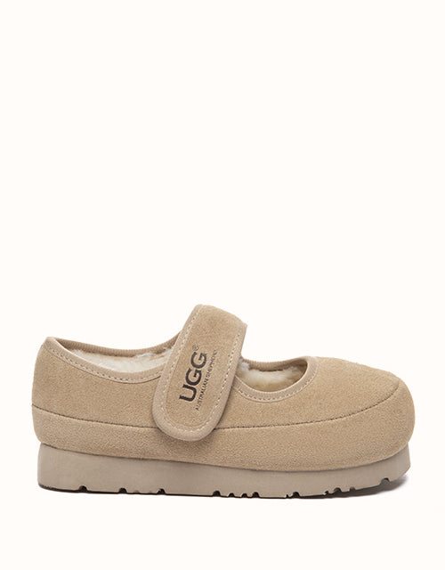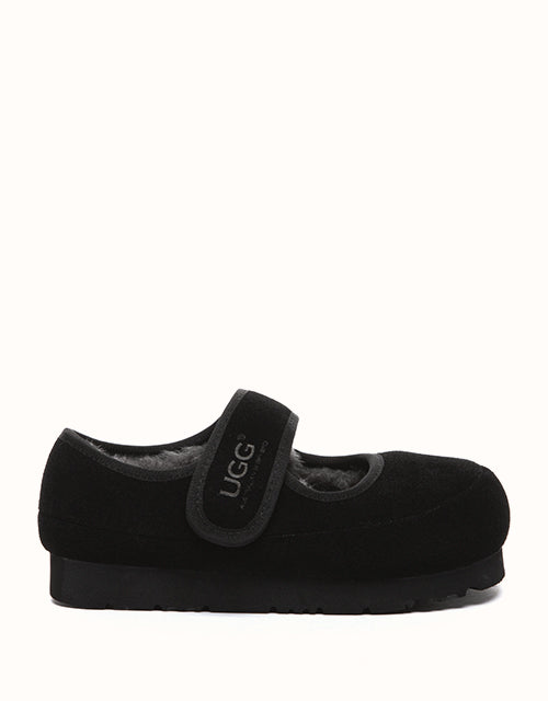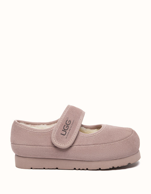 The UGG Australian Shepherd® Millie Kids Mary Jane shoes bring cozy elegance to every step. Crafted from soft cow suede and lined with plush sheepskin wool, they offer natural warmth, breathability, and all-day comfort — perfect for playful adventures or special occasions.