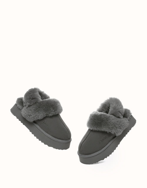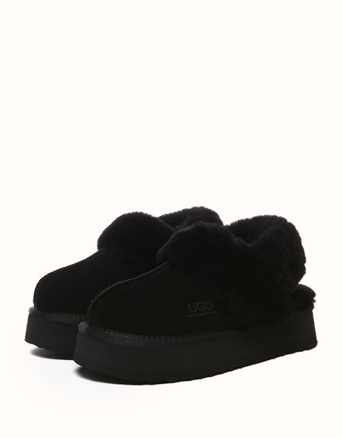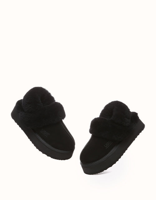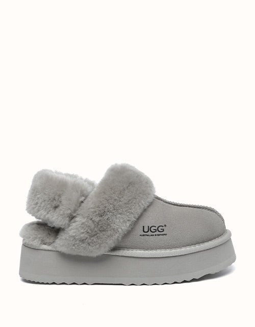 Wrap your feet in optimum warmth and softness with the Australian Shepherd Musa Slingback Platform Ugg Slippers. Made from fluffy sheepskin wool, these slippers promise cosiness all day long, while featuring moisture-wicking properties to keep your feet cool and dry. These platformed slippers will instantly elevate any winter look, and are designed with a removable, fluffy wool strap to offer versatile wear and prioritise comfort when you slip them on!