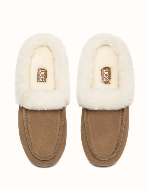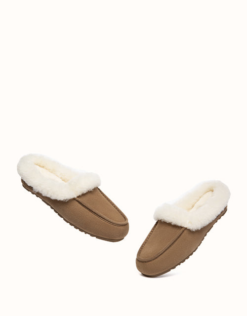 The AUSTRALIAN SHEPHERD® Slippers combine soft cow suede with a plush sheepskin wool lining for warm, breathable comfort. A sturdy rubber sole with anti-skid grip allows easy movement indoors and outdoors, while the slip-on shape keeps everyday wear relaxed and simple.