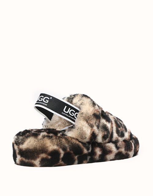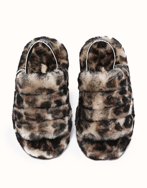 Slip into this trendy pair of fluffy slides, now available in leopard print! With a soft interior and exterior and an elastic ankle strap, comfort is at the forefront of this style while bringing a bit of fun to your everyday outfit.