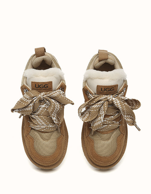 The Australian Shepherd Parkyr Lace Up Platform Boots blend the best of a classic mini UGG boot and a stylish sneaker. Made from premium Australian sheepskin, they naturally absorb moisture to keep your feet warm and dry. Featuring elevated laces and a modern design, these boots offer both fashion and function. Available in Chestnut and Sand, they’re a durable yet stylish choice for any outfit.