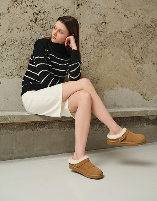The Australian Shepherd Pulsey Slippers combine cozy comfort with casual style. Made from soft sheepskin for plush warmth, they feature a fluffy ankle trim and adjustable strap for a snug fit. Perfect for relaxing at home or laid-back outings with friends.