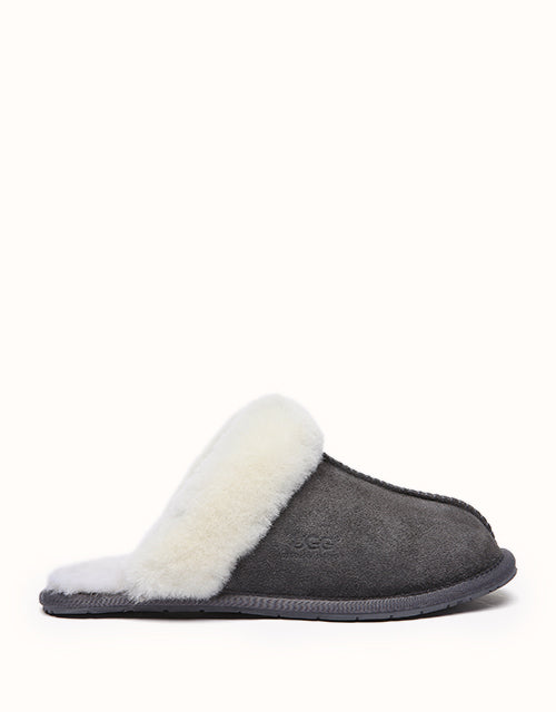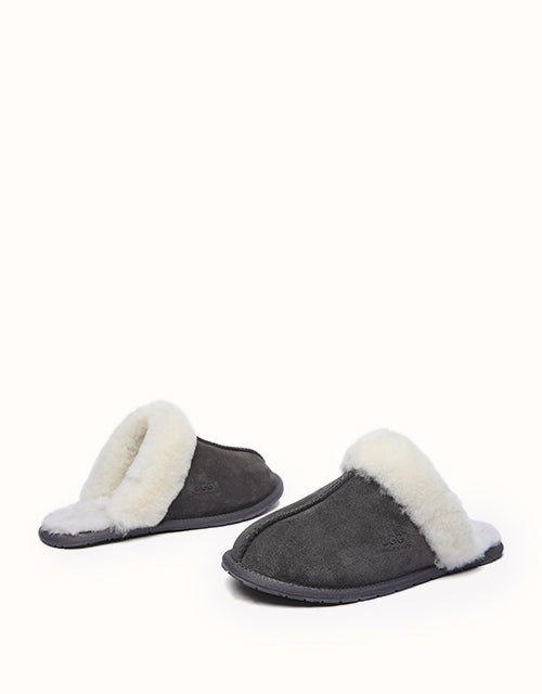 The classic Ugg Scuff Rosa Slippers are a unisex essential for cozy comfort at home. Made with environmental-friendly production, they feature a soft sheepskin exterior and Australian wool insole that naturally wicks away moisture, keeping feet warm, dry, and comfortable—perfect for winter evenings.