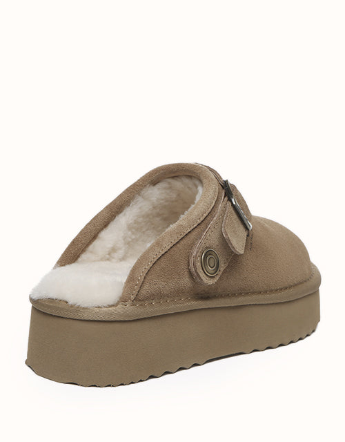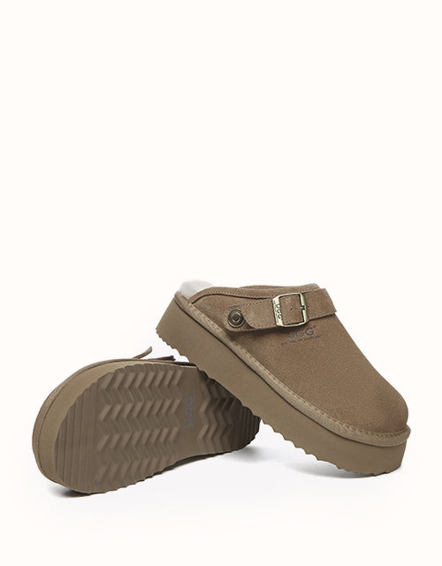 Featuring a versatile rotating strap, this innovative design effortlessly transforms from sandal to slide, blending vintage charm with modern minimalism. Crafted from premium Australian Merino sheepskin, it envelops your feet in luxurious softness, ensuring warmth and comfort all day long. The lightweight EVA platform sole adds height without compromising on comfort, delivering responsive cushioning and steadfast support for every step.