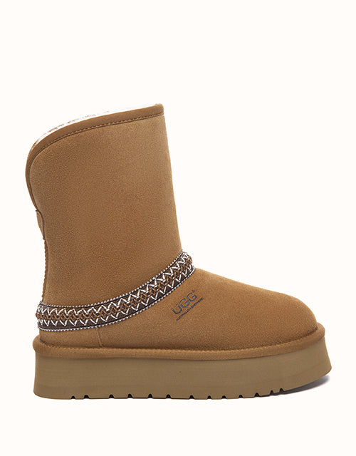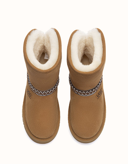 The Fayle Short Platform UGG Boots offer classic warmth with a refined seasonal detail. Crafted from soft cow suede and lined with plush sheepskin wool, they provide natural insulation and all-day comfort. The knitted trim adds subtle texture to the clean short-boot silhouette, while the lightweight platform sole delivers gentle lift and stable support for everyday winter wear.