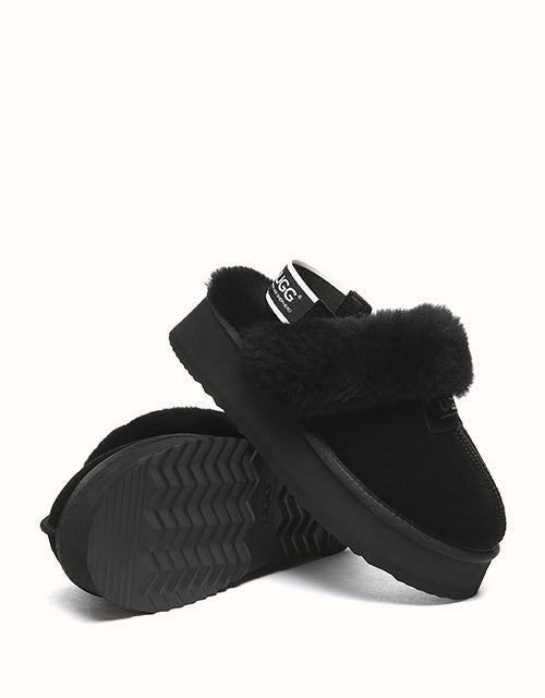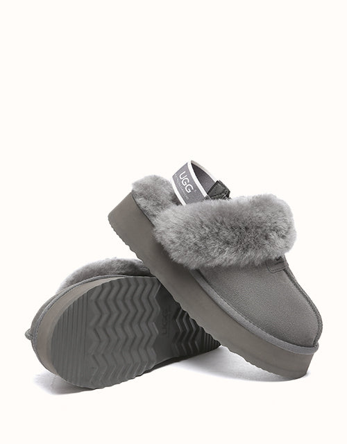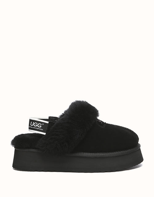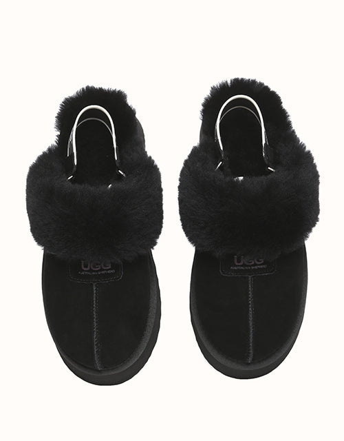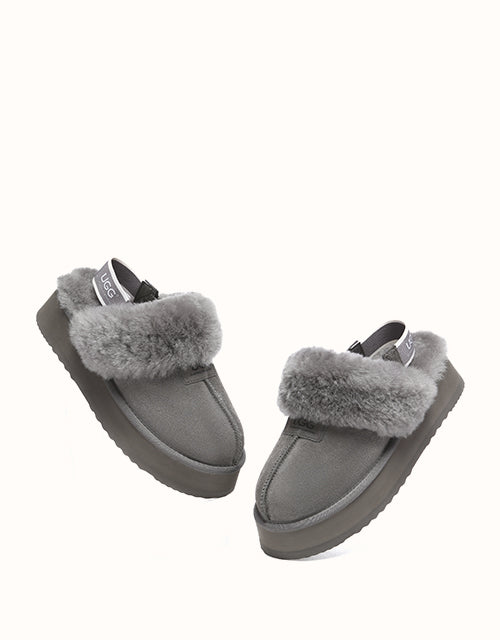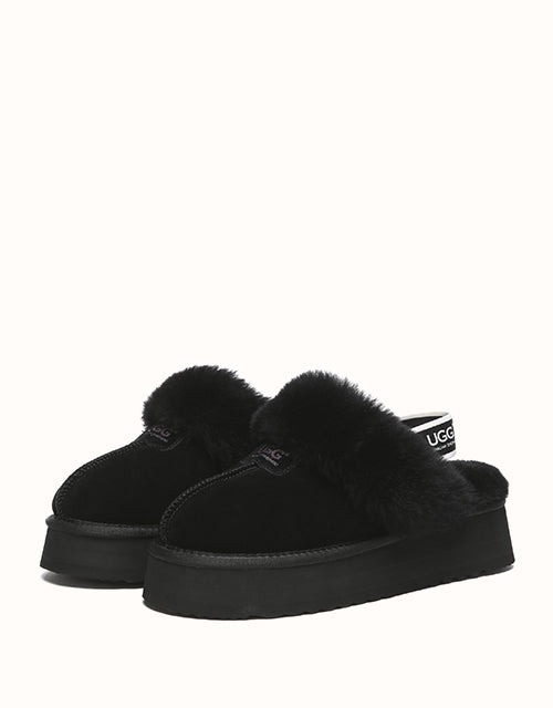 The Australian Shepherd Suzie Platform Slingback Ugg Slippers are a classic, must-have slipper to add to your winter wardrobe. Featuring a removable elastic strap, these slippers promise a secure comfort, while still offering the ease of an easy to-slip-on style. Available in five neutral colourways, these slippers are made with a thick platformed sole to effortlessly elevate any outfit.