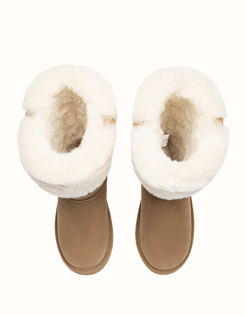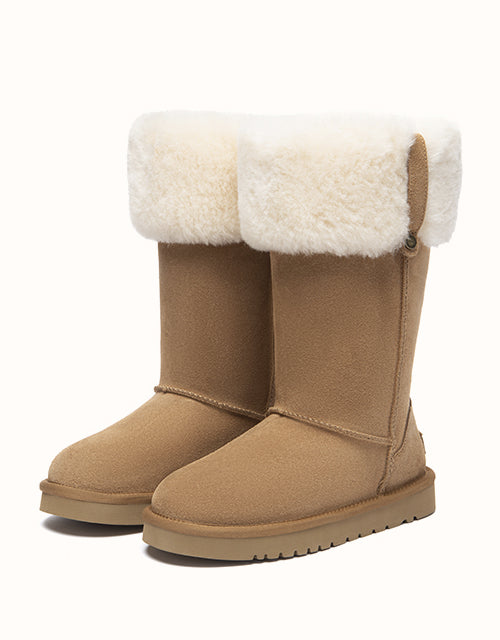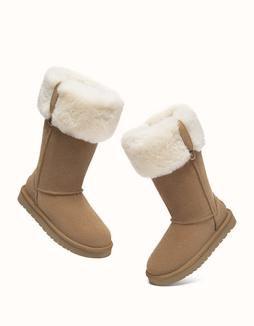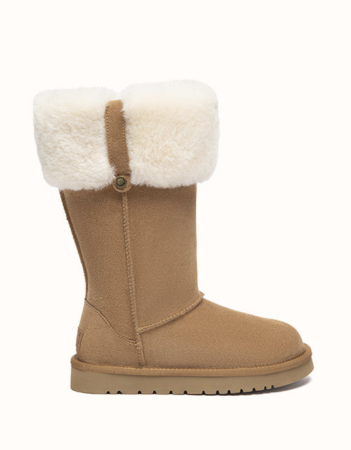 The Eleny Tall UGG Boots offer elevated warmth in a clean, classic silhouette. Crafted from smooth cow suede and fully lined with plush sheepskin wool, they provide natural insulation and lasting comfort through colder days. The soft wool collar adds a cosy finish, while the lightweight EVA sole delivers flexible support for everyday winter wear.