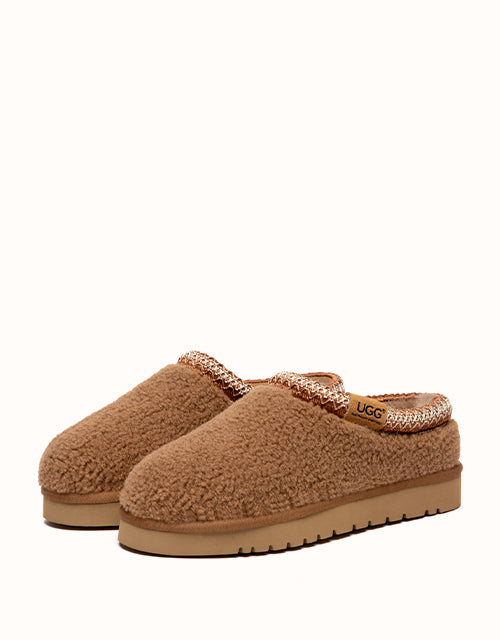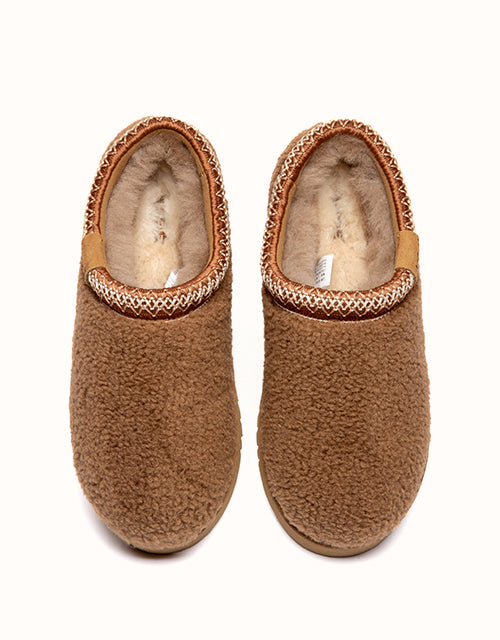 The AUSTRALIAN SHEPHERD® Tayla Slippers redefine cozy minimalism. Featuring a soft boucle-like upper and clean round-toe shape, they bring texture and warmth in a modern silhouette. The easy slip-on design and lightweight sole make them perfect for unwinding at home or stepping out in effortless style.
