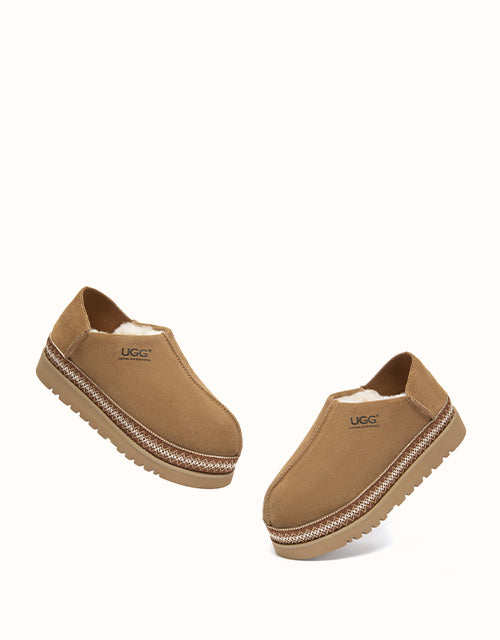 Clean and understated, the Tayven UGG Slippers are crafted from smooth cow suede with a plush sheepskin wool lining for natural warmth and comfort. Finished with subtle woven trim and a lightweight EVA sole, they’re designed for effortless everyday wear, indoors or out.