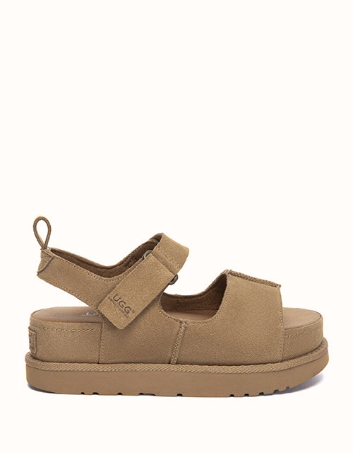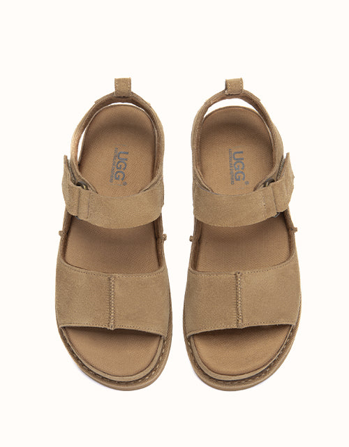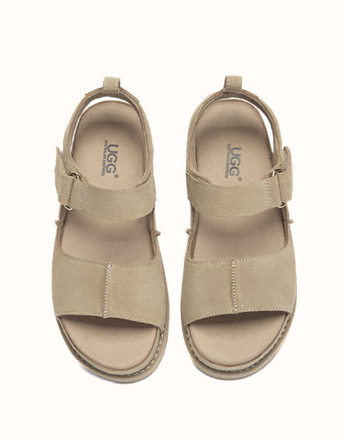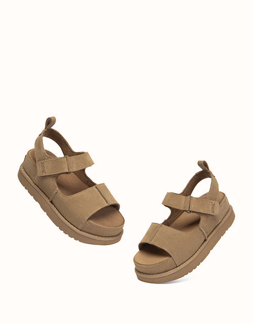 The Terral Slingback Platform Sandals are designed for balanced comfort and everyday versatility. Crafted from structured cow suede, the adjustable straps provide a secure, personalised fit, while the slingback design offers added stability for daily wear. Finished with a lightweight platform sole and breathable fabric footbed, they transition effortlessly from indoor comfort to casual outdoor styling.