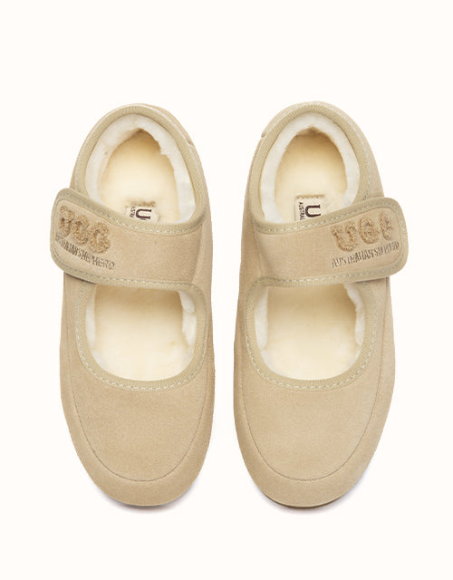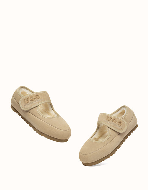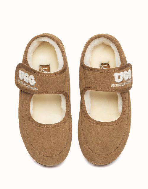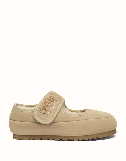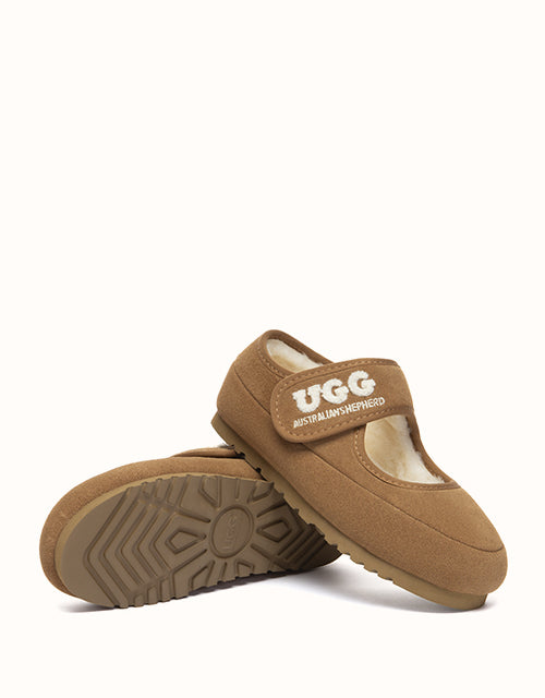 The AUSTRALIAN SHEPHERD® Velvi Kids are crafted from easy-to-clean cow suede and lined with natural sheepskin wool for softness, warmth, and moisture absorption. The water-resistant EVA sole provides durability and everyday comfort, whether walking the dog or playing outdoors. Designed in a classic Mary Jane style, they add a sweet and timeless touch to your child’s wardrobe.