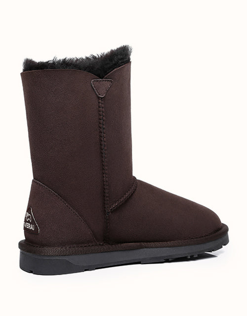 The Twin Button includes a dual button opening on the side that is both stylish and functional. The fluffy interior that spills out the top is gorgeously soft and luxurious. Put your best foot forward and step into these boots to feel like you’re walking on a big cloud.