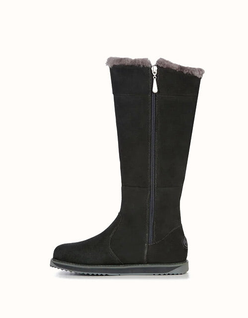 Brave the cold in style with the EMU® Waterproof Tall Boots. Built to withstand rain and snow, these knee-high boots feature a plush sheepskin wool lining for warmth and comfort. The suede upper and sleek silhouette add timeless appeal, while the sturdy sole provides stability on slippery streets. A side zip ensures easy wear, with a lightweight midsole for lasting support.