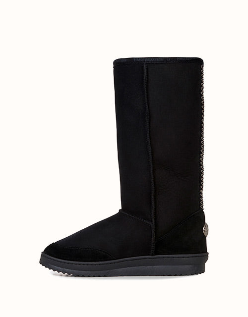 The Emu® Platinum Outback Hi is crafted in Australia from premium double-faced sheepskin, delivering natural warmth, breathability, and all-day comfort. Featuring a tall silhouette with sheepskin lining and insole, it provides superior insulation while remaining soft and durable. Available in Chestnut and Black, this timeless boot pairs practicality with classic style.
