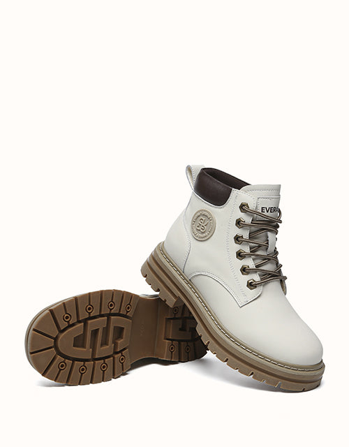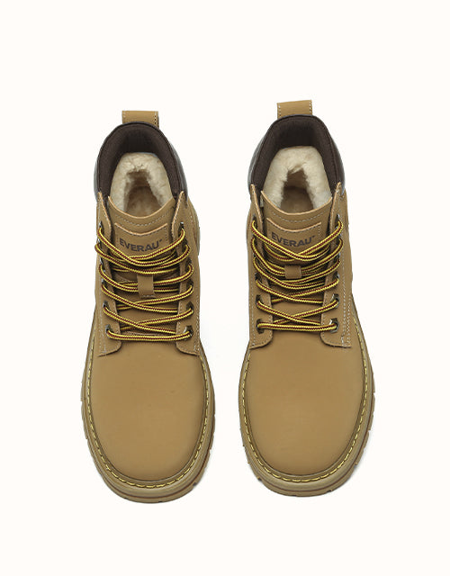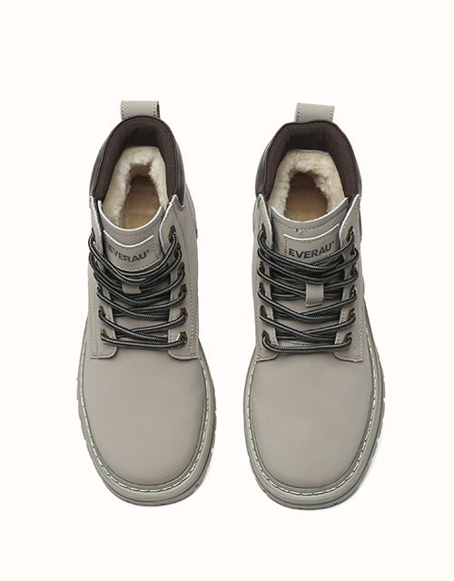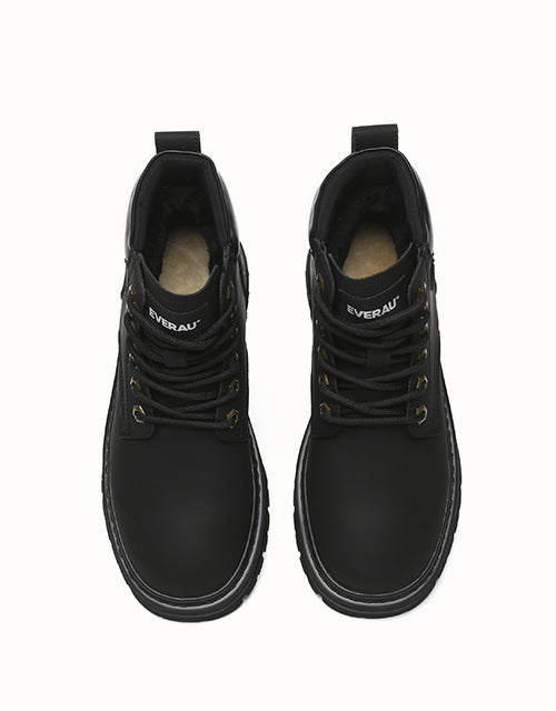Experience everyday comfort with EVERAU’s stylish footwear. Made with cow leather and PU upper, and fully lined with soft sheepskin wool, these shoes keep you warm and supported all day. The durable rubber sole offers great traction, while the wool insole adds extra comfort.