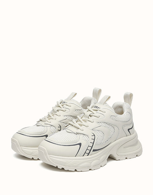 The Caleb Chunky Sneakers deliver modern comfort with a clean, urban silhouette. Designed with breathable mesh and split cow leather overlays, they offer lightweight structure and everyday durability. The cushioned platform sole provides stable support with subtle lift, making them an easy choice for long walks and daily city wear.