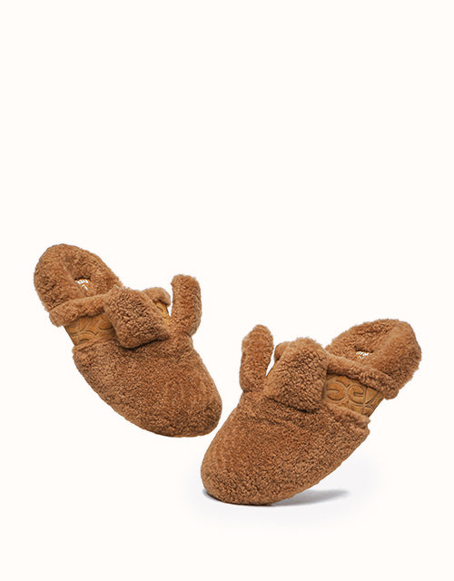 Fluffy Bunny slippers are made of Australian Merino wool with a soft, fluffy texture. The soles are thick and provide a good grip, while the lining wraps around your feet like a soft blanket. It's like walking on a cloud!