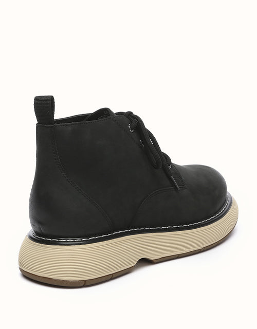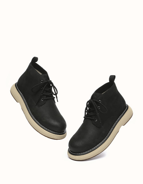 Designed for both durability and style, the EVERAU Kaarlo Leather Lace Up Boots balance urban sophistication with outdoor edge. Crafted from supple full-grain leather with a hand-burnished vintage finish, they come in Black or Chestnut, echoing warm caramel and coffee tones. A breathable mesh lining and smooth leather insole provide gentle support and all-day comfort.