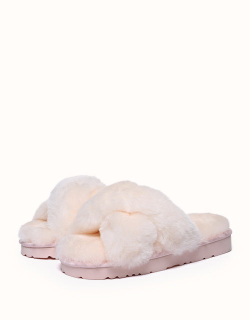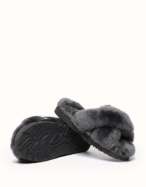 Keep your feet warm and cozy with the EVERAU Leanna Fluffy Slides. Designed for easy wear, these slides are fully lined with soft sheepskin wool, providing unmatched comfort with every step. Available in four stylish colors, they combine elegance and comfort, making them the perfect choice for relaxing at home in your favorite loungewear or pajamas.