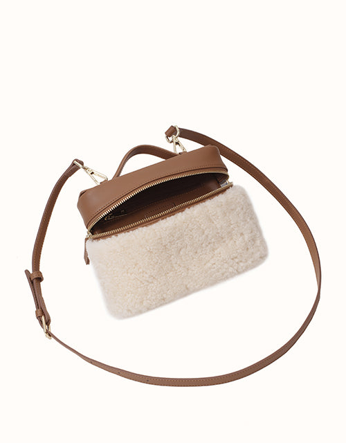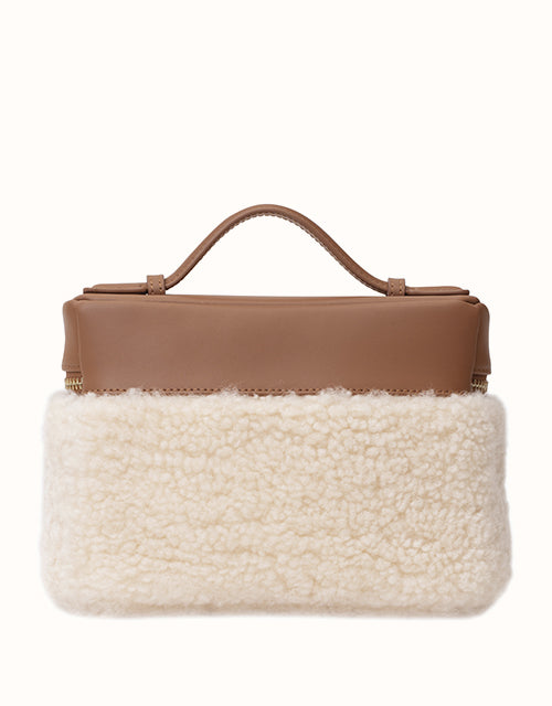 The EVERAU® Misu Bag features a structured boxy silhouette softened by fluffy contrasts. With a top handle, detachable strap, and subtle gold accents, it blends elegance with everyday versatility in timeless chestnut brown.