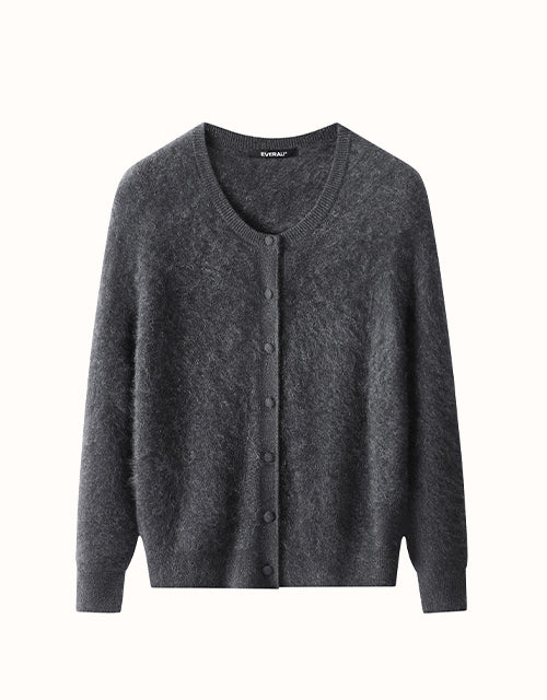 The EVERAU® Morra Cardigan offers soft warmth with a clean, relaxed silhouette. Crafted from a yak-wool cashmere blend, it drapes lightly and layers effortlessly. A simple button front and neat round neckline make it an easy, timeless everyday piece.
