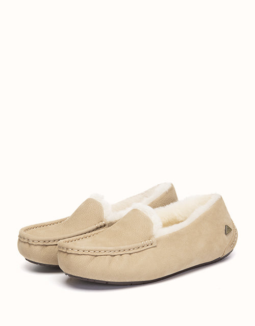 Designed with a timeless moccasin silhouette, the Pielet slipper blends classic comfort with refined detailing. Crafted from soft cow suede and lined with plush sheepskin wool, it offers warmth, flexibility and everyday ease—perfect for relaxed indoor wear or light outdoor steps.