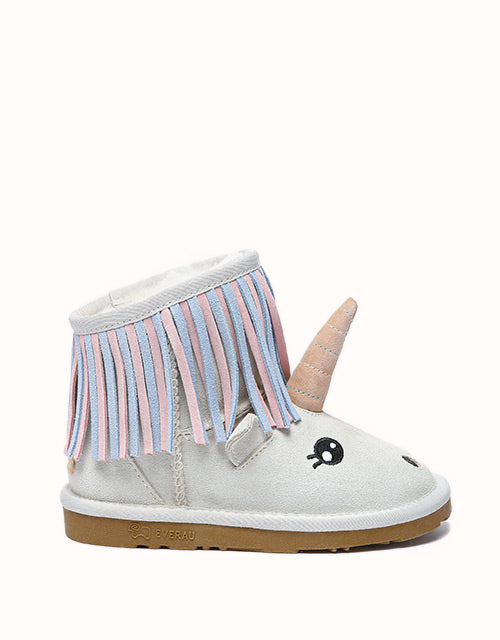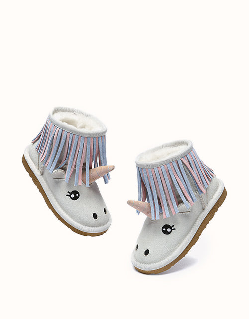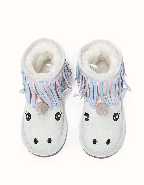 Keep your little ones warm this season with the enchanting Unicorn Kids Boots where comfort meets a magical adventure! As they step into the magical world, the interior of the luxurious sheep wool will keep their little feet extra warm. Rest assured that the durable rubber outsole will protect them in all kinds of weather as they are designed to withstand the wear and tear of their energetic play.