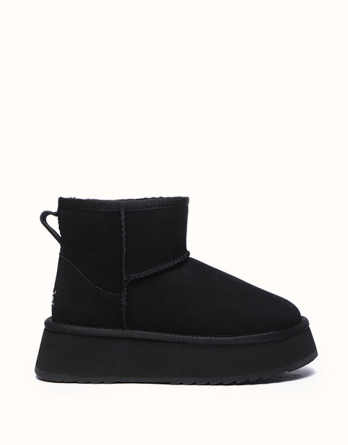 The shoe of the moment, get your hands on the must-have style right now. A pair of the Australian Shepherd Mini Platform Ugg Boots will have your outfit ensembles reaching new heights. Choose from two staple colours, black and chestnut, and watch as the rich suede and platform add an element of luxe to your whole look. Comfort has not been forgotten in the design of these shoes, with an EVA rubber outsole to increase cushioning and traction, promoting a lighter boot. Plus these shoes will last for many seasons to come as a water-resistant coating has been applied to the surface to prevent dirt and water damage.