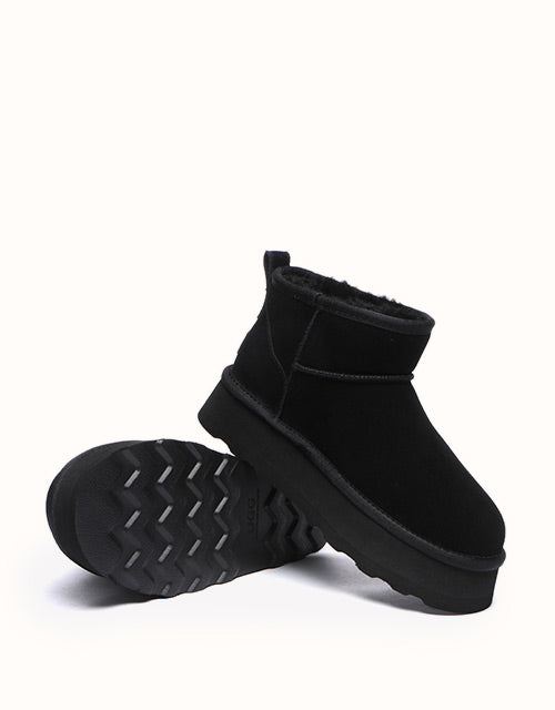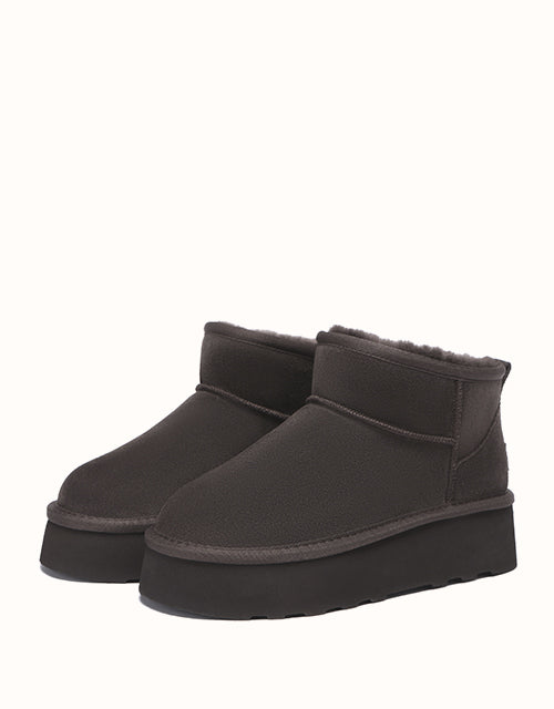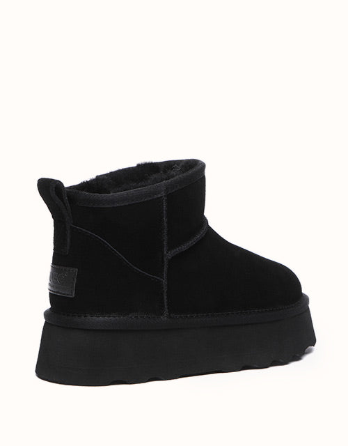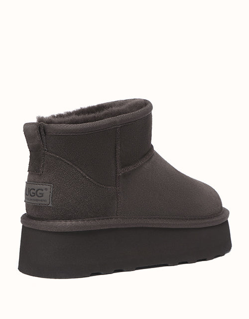 The biggest trend at the moment - these Australian Shepherd Ronnie Ugg Mini Platform Boots are going to have you turning heads the moment you walk out the door. A style that will match anything, paired with a cute matching track set or your favourite jeans, you will look effortlessly cool. Made from the same rich suede as the original but in a bolder design, you can’t go wrong with the new Ronnie style. For extra benefit, a water-resistant coating has been applied to the surface of the shoes which ensures your boots remain wearable for years to come.