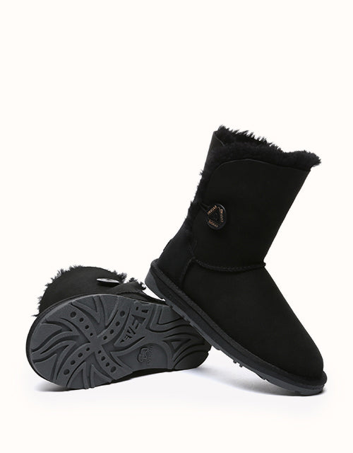 Add a touch of flair to a classic pair of ugg boots with the UGG EVERAU Short Button Ugg Boots! Created with a water-resistant coating on its exterior, these boots will get you through all types of weather while avoiding damage from dirt and water. The button design adds a fashionable touch to the boot while offering easy, adjustable wear when taking them on and off.