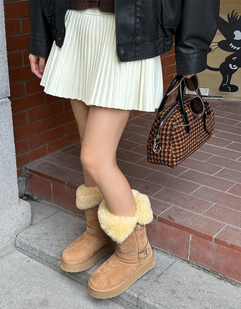 Explore three styles in a single pair with Everau’s Valerie Tall Boots. Designed with a foldable bootleg for adaptable looks and a sturdy outsole for durability, these boots provide reliable protection in cold weather. Fully lined with double-sided Australian sheepskin wool, they ensure breathable comfort, moisture regulation, and natural odor control. Available in Chestnut and Black, these must-have boots are perfect for winter walks or everyday wear.