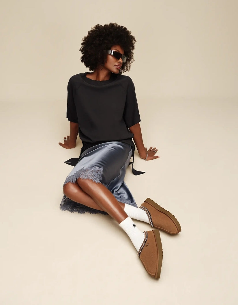 A timeless classic refreshed. The UGG® Tasman II combines the beloved slip-on silhouette with a plush sheepskin lining and smooth suede upper. Finished with signature UGGbraid detailing and a lightweight sugarcane EVA outsole for comfort that lasts season after season.