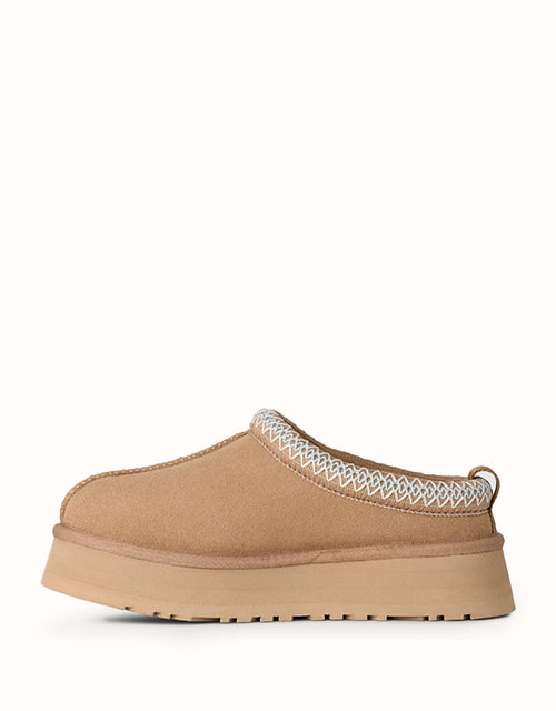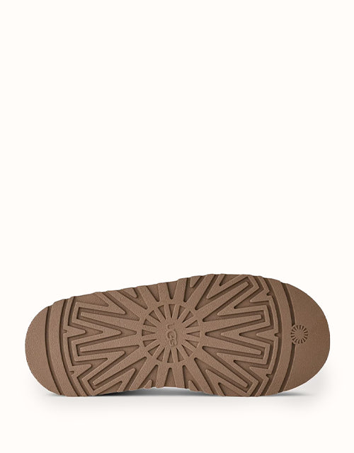 The UGG® Tazz II redefines comfort with a modern platform silhouette and signature UGGbraid detail. Crafted from smooth suede and lined with plush sheepskin, it offers lightweight ease and a subtle lift for everyday wear. Finished with a sugarcane EVA outsole for enhanced movement and sustainability.