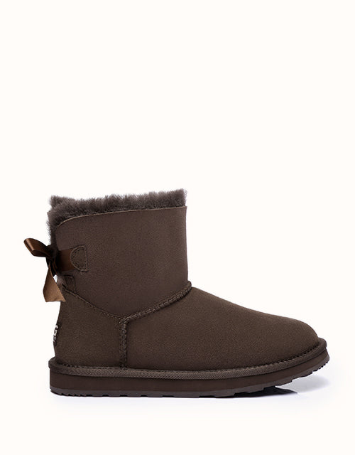 This beautiful pair is the all-rounder. From relaxing at home to heading for brunch, this pair styles easily with your wardrobe and is a comfort queen! The cute bow on the back launches this design into stardom and ticks all the design boxes including A-Grade double-faced sheepskin and a durable rubber sole.