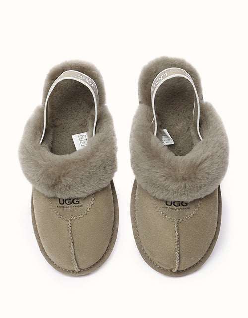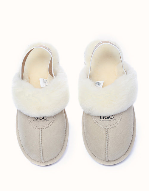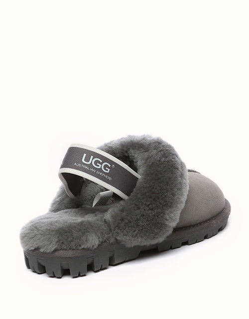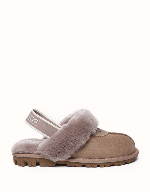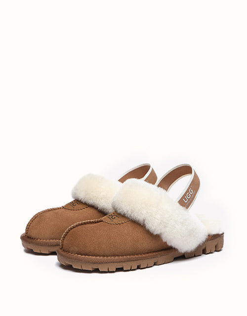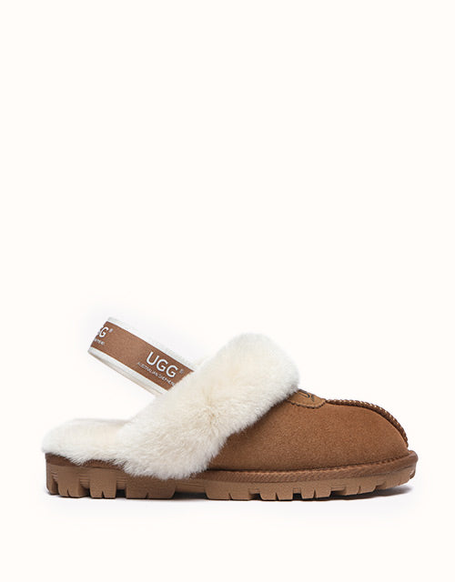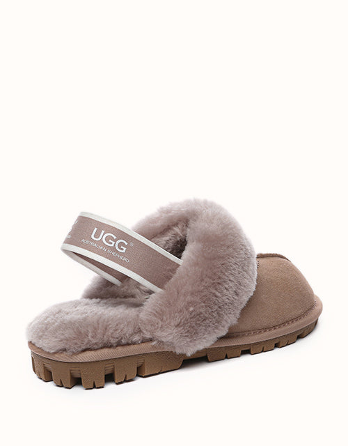 The Australian Shepherd slingback ugg slipper is specially designed for wearing both indoors and outdoors with a textured base providing additional grip on slippery surfaces. Made from high-quality calf suede, these slippers are flexible and weightless, making them ideal for all conditions. The ugg branded elastic band provides easy entry and extra security. Available in a classic chestnut colour, these slippers are perfect for anyone looking for the comfort of a slipper in an outdoor setting.